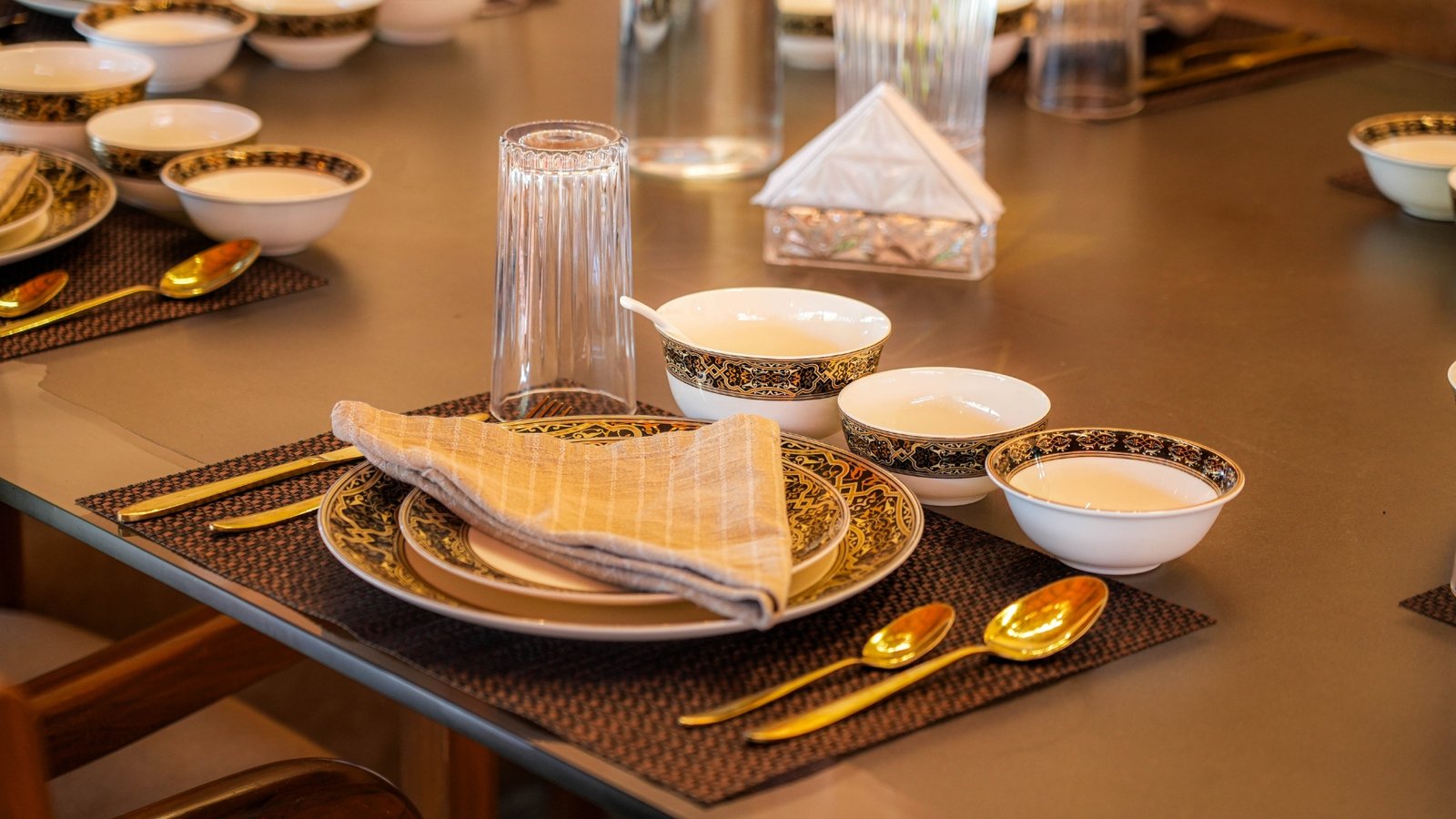 Enjoy your meals in a thoughtfully designed environment blending earthy textures, warm lighting, and modern tones — creating a perfect harmony of tradition and trend.